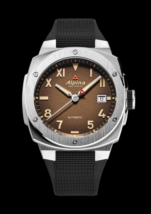 präsentiert sich in einem 39 x 40,50 mm großen Gehäuse mit einem Kautschukarmband.